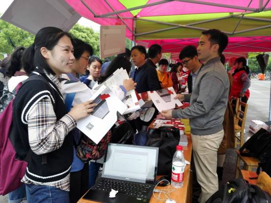 4月14日-15日,av直播 2018年本科“三位一体”综合评价招生面试,我校利用众多陪考家长来到学校的机会,在学校包玉书楼北广场举行各本科专业招生咨询会,今年的咨询会场面火爆,吸引了各地的考生和家长。