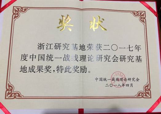 浙江基地在2017年度全国基地评优中再获佳绩。2018年4月28日在中国统一战线理论研究会研究基地工作会议上,非公有制经济人士统战工作理论研究浙江基地又再获好成绩,荣获2017年度中国统一战线理论研究会研究基地“成果奖”大奖。中央统战部政策理论研究室主任张健为研究基地颁奖。全国十一个省市研究基地中两个研究基地喜获“成果奖”。